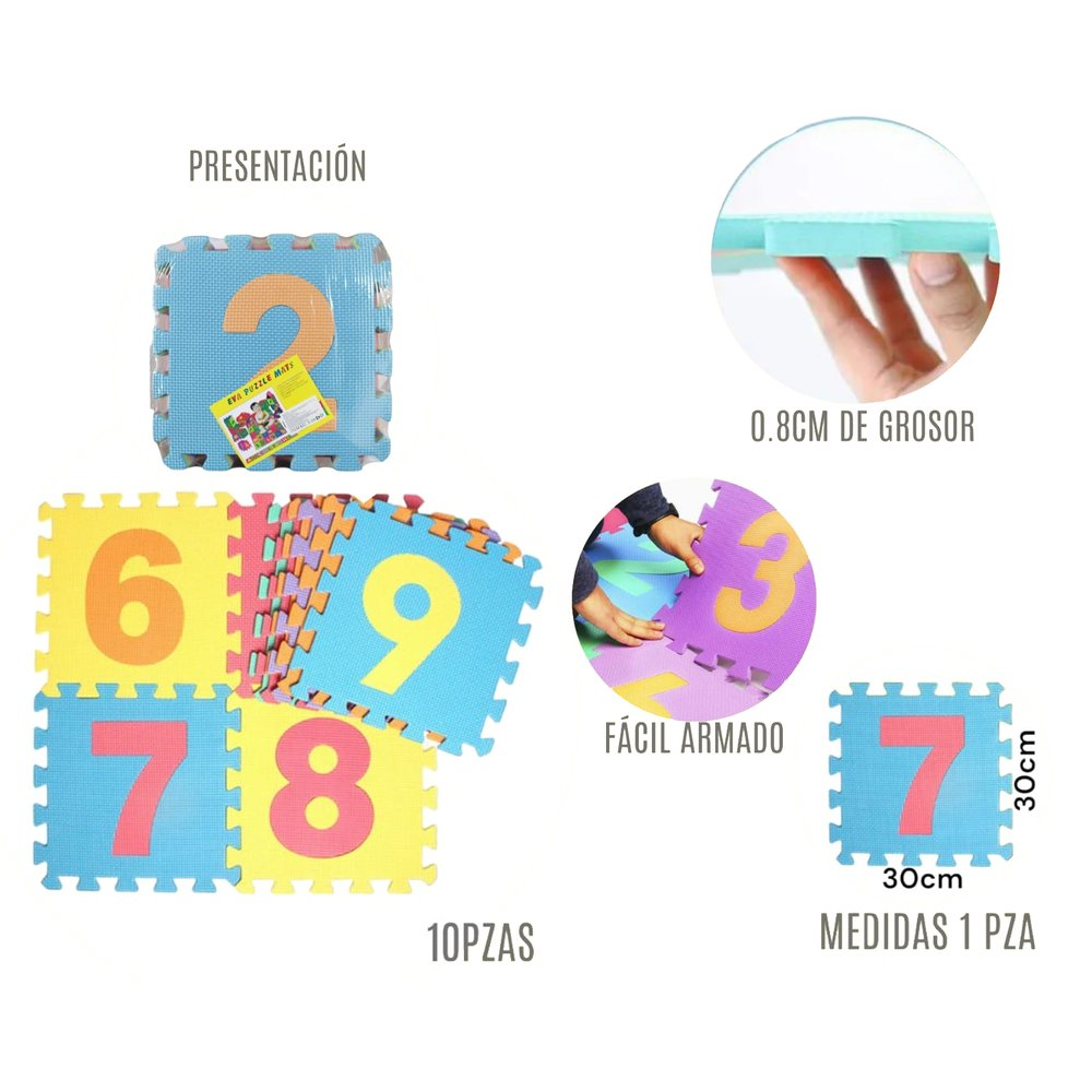 Tapete de fácil instalación con un sistema de armado tipo rompecabezas. La textura del material es esponjoso firme (esponja de celda cerrada).